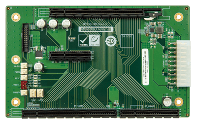 5-slot PICMG 1.3 backplane for half-size SBC, with one PCIe x16 Slot and one PCIe x4 Slot, RoHS