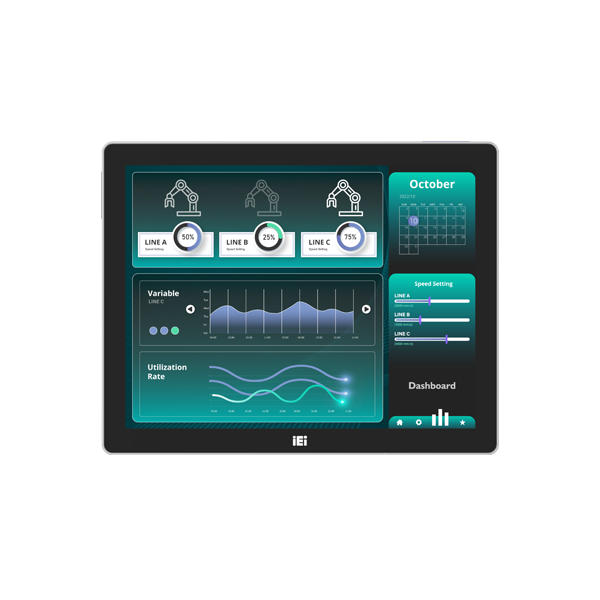 The panel PC features an elegant, slim and true-flat design, which make it a perfect choice to fit in any environment. True-flat screen surrounded with narrow bezel makes it easily to setup in landscape or portrait orientation, and is easy to maintain and clean.